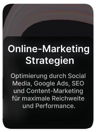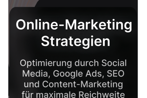 Erfolgreiche Online-Marketing-Strategien für messbare Ergebnisse! Wir entwickeln maßgeschneiderte Konzepte für SEO, Social Media, Content-Marketing, Paid Ads und Conversion-Optimierung. Erreiche deine Zielgruppe gezielt und steigere deine Sichtbarkeit sowie deinen Umsatz!